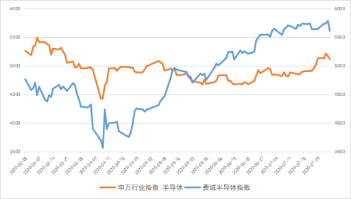 從資本市場(chǎng)指數(shù)來(lái)看,6月費(fèi)城半導(dǎo)體指數(shù)(SOX)上漲11.7%,中國(guó)半導(dǎo)體(SW)業(yè)指數(shù)上升5.3%,國(guó)內(nèi)外半導(dǎo)體資本市場(chǎng)受關(guān)稅緩解影響回升明顯。